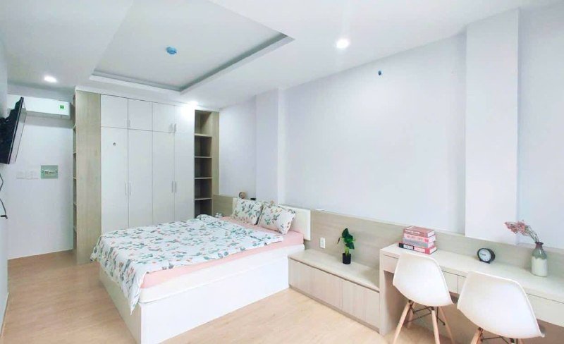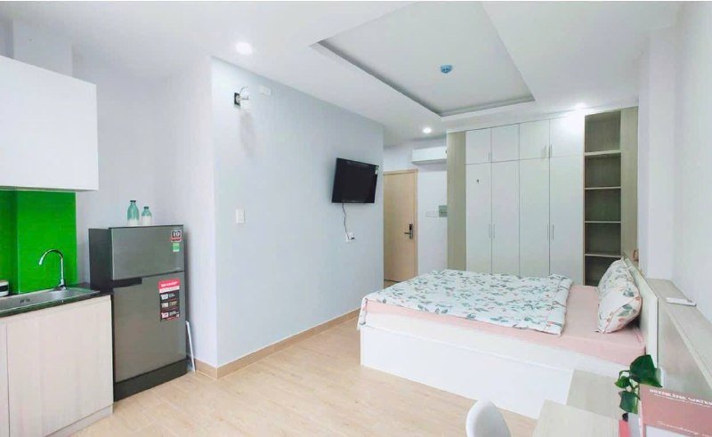 Студия с окном, лифт, вся необходимая мебель, холодильник, плита, кондиционер, телевизор, интернет, стиральная машина в общей зоне, парковка, рядом магазины и кафе. Аренда: 8.000.000 vnd в мес. Депозит 1 месяц. Договор 6 месяцев. Электричество: 4.000 vnd/кВтч. Вода: 150.000 vnd с чел. Обслуживание: 200.000 vnd в мес.