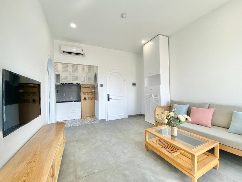1 спальня, кухня-гостиная. Лифт, гараж. Вся необходимая мебель: холодильник, плита, кондиционер, телевизор, интернет. Общая прачечная и сушилка. Уборка раз в неделю. Рядом магазины и кафе. Животные запрещены.