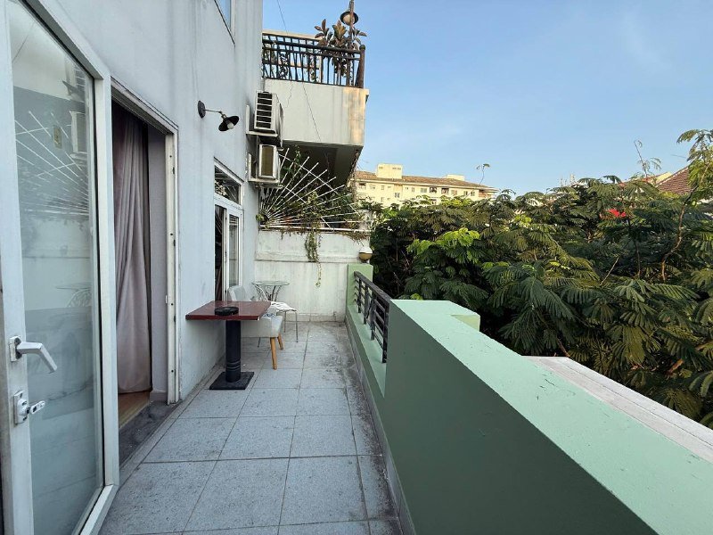 Студия с ванной и балконом. Вся необходимая мебель: холодильник, плита, кондиционер, телевизор, интернет. Стиральная машина в общей зоне. Уборка, стирка, смена белья. Рядом магазины, кафе и кофейни.
