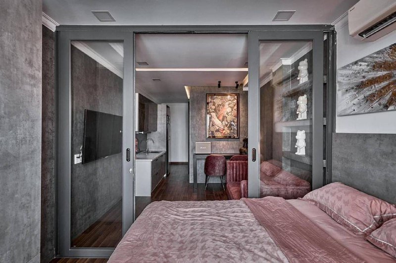 1 спальня кухня-гостиная, балкон. Лифт, охрана 24/7. Вся необходимая мебель. Холодильник, кондиционер, телевизор, интернет. Уборка 2 раза в неделю. Парковка. Рядом парк, магазины, кафе. Плиты нет (обсуждаемо). Запрещены домашние животные.