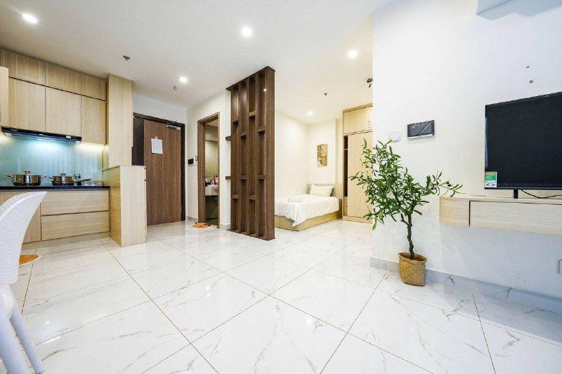 Новостройка, 1 спальня, кухня-гостиная, балкон. Вся необходимая мебель: плита, холодильник, кондиционер, телевизор, стиральная машина. Красивый ЖК с бассейном, теннисным кортом, баскетбольной площадкой, прогулочными зонами. Рядом парк, супермаркет, парк аттракционов, река. Аренда: 13.000.000 vnd в мес. Депозит 1 месяц. Договор 6 месяцев. Электричество и вода по счетчикам. Обслуживание ЖК не включено.