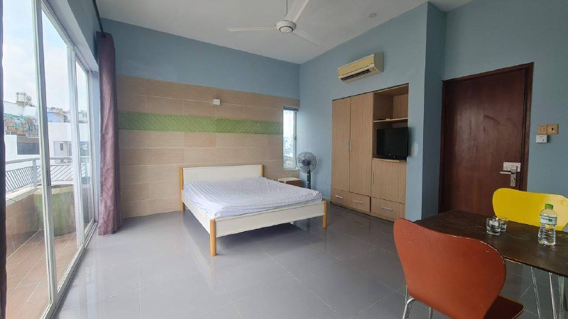 Студия 35 кв.м. с балконом. Отдельная кухня. Вся необходимая мебель: холодильник, плита, кондиционер, телевизор, интернет, стиральная машина в квартире. Уборка раз в неделю. Рядом магазины, кафе.